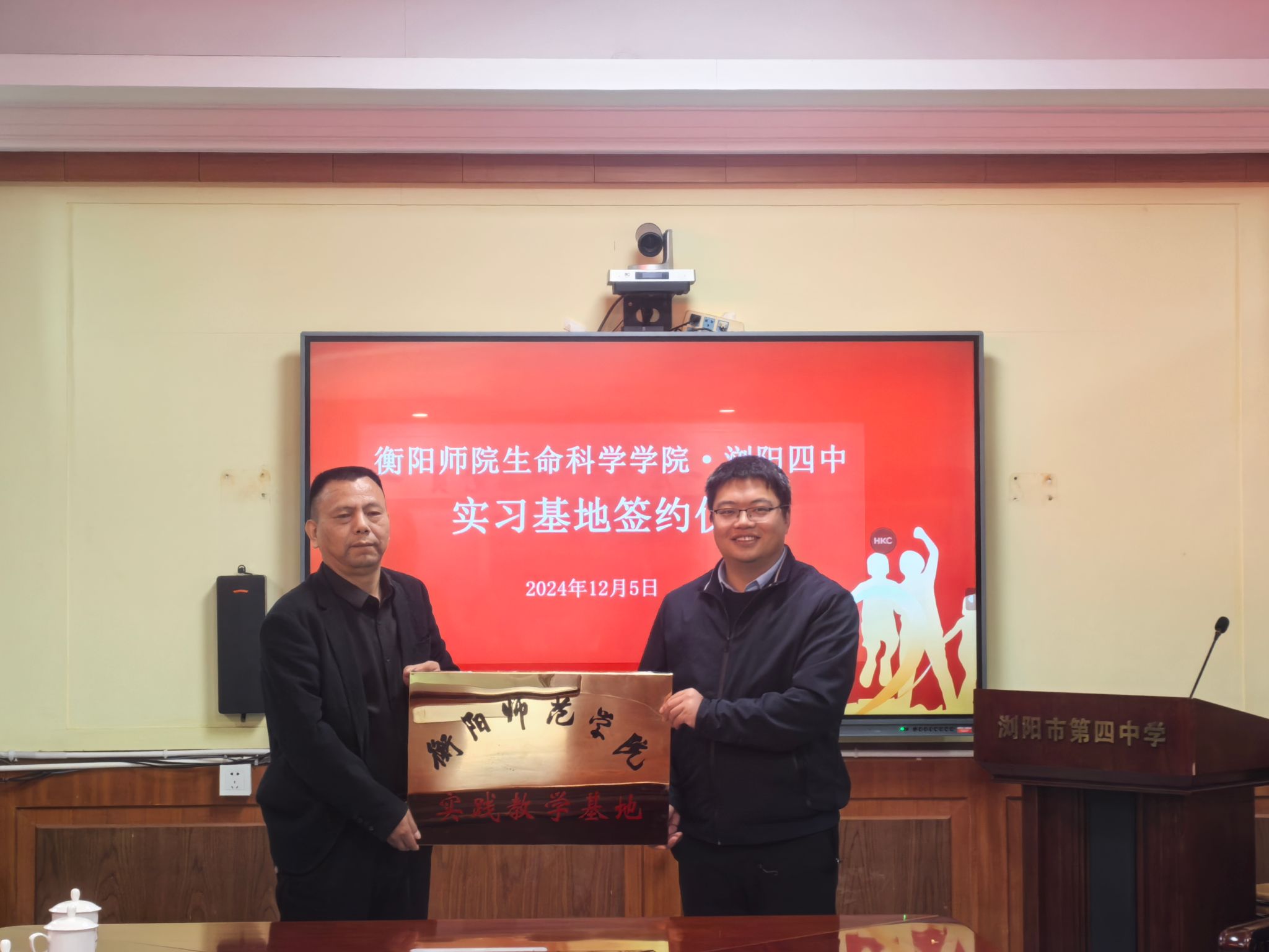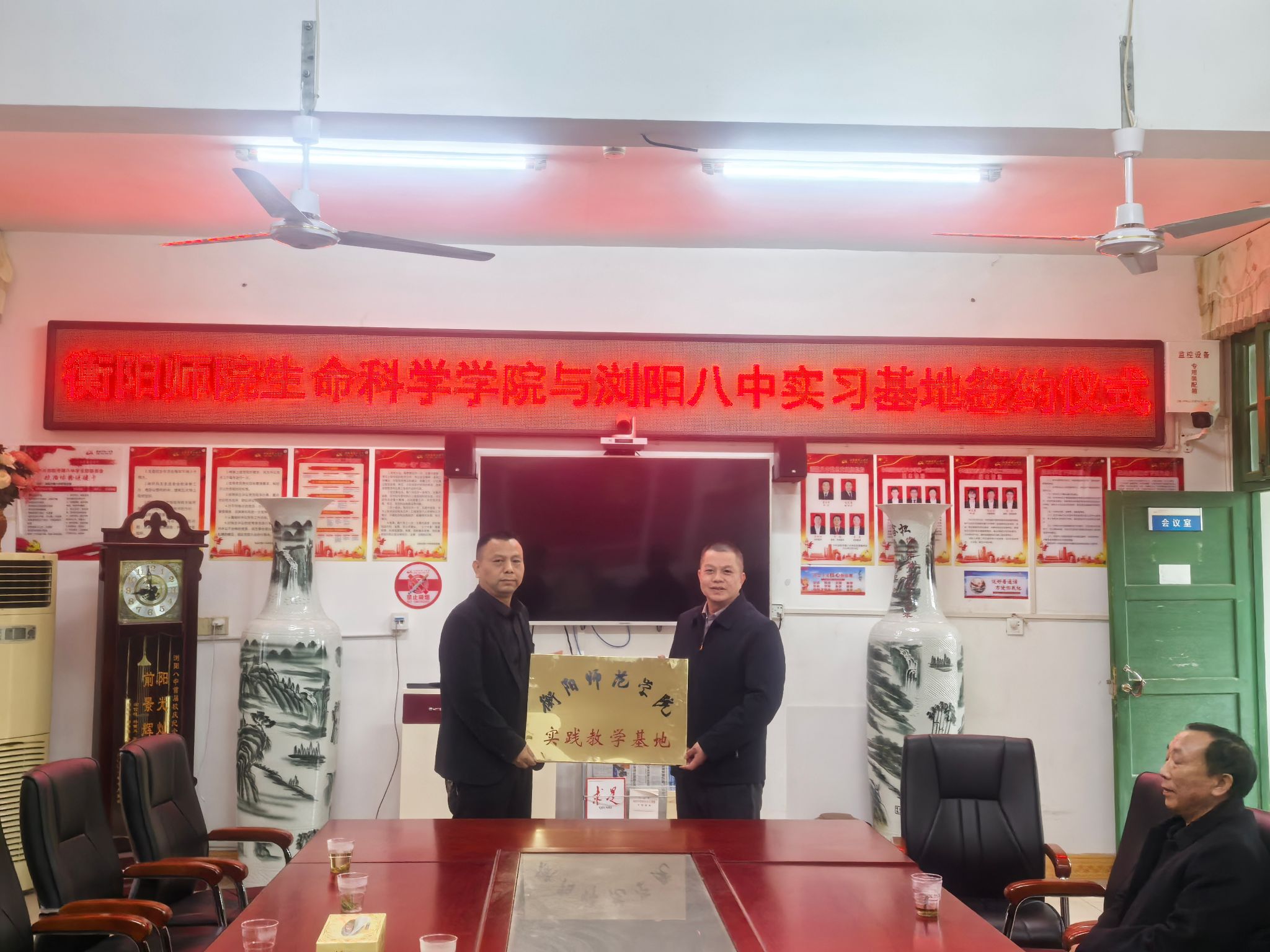 在双方代表的见证下,易院长与两所学校校长共同签署了实习基地合作协议书,并举行“实习基地”授牌仪式。
