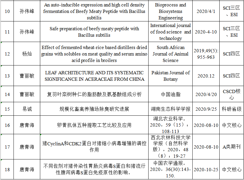 2020年发表公开科研论文统计表