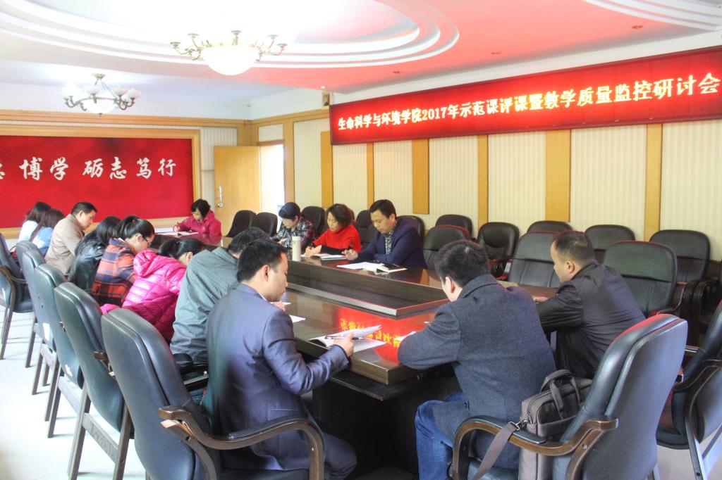 人才培养质量是关键、示范是引领、监控是保障。4月13日下午3:00,在南岳学院三楼会议室,生命科学与环境学院召开了“示范课”评课暨教学质量监控研讨会。会议由曹丽敏院长主持,主管副院长易诚教授做了《改革在路上、未来会更好》的主题发言,校级督导王剑秋教授莅临指导工作,刘艳波书记、没有教学任务的老师、教学秘书等参加了会议。