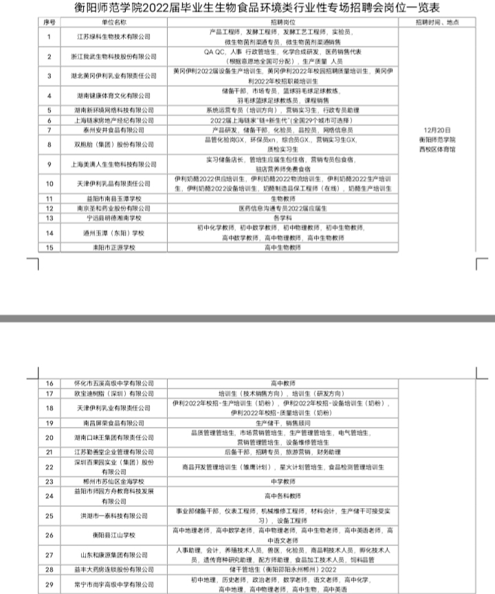 为使同学们尽快融入社会,加强自身专业技能,提高自身专业知识与工作实习的契合度,并找到自己满意的工作和位置,同时为2022届毕业生联系实习单位准备,beat365官网特举办生物食品类行业性专场招聘会。