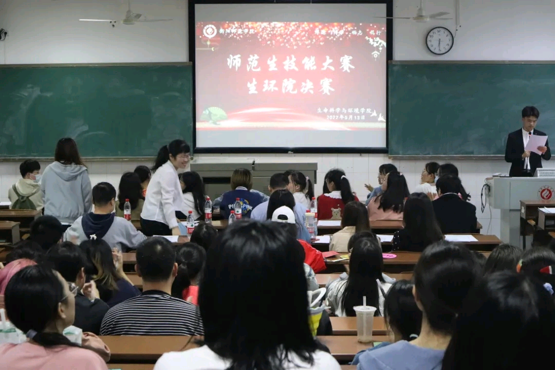 为进一步提高学生的教师教育教学基本技能,beat365官网为学生搭建了一个锻炼和展示自我风采的平台——师范生技能大赛。2022年5月13日下午六点半,生命科学与环境学院师范生技能大赛决赛在外语楼301顺利拉开帷幕,院长曹丽敏、副书记蒋湘祁、专业教师江伟民、王志新等以及往届的优秀参赛选手出席了本次比赛并担任评委。