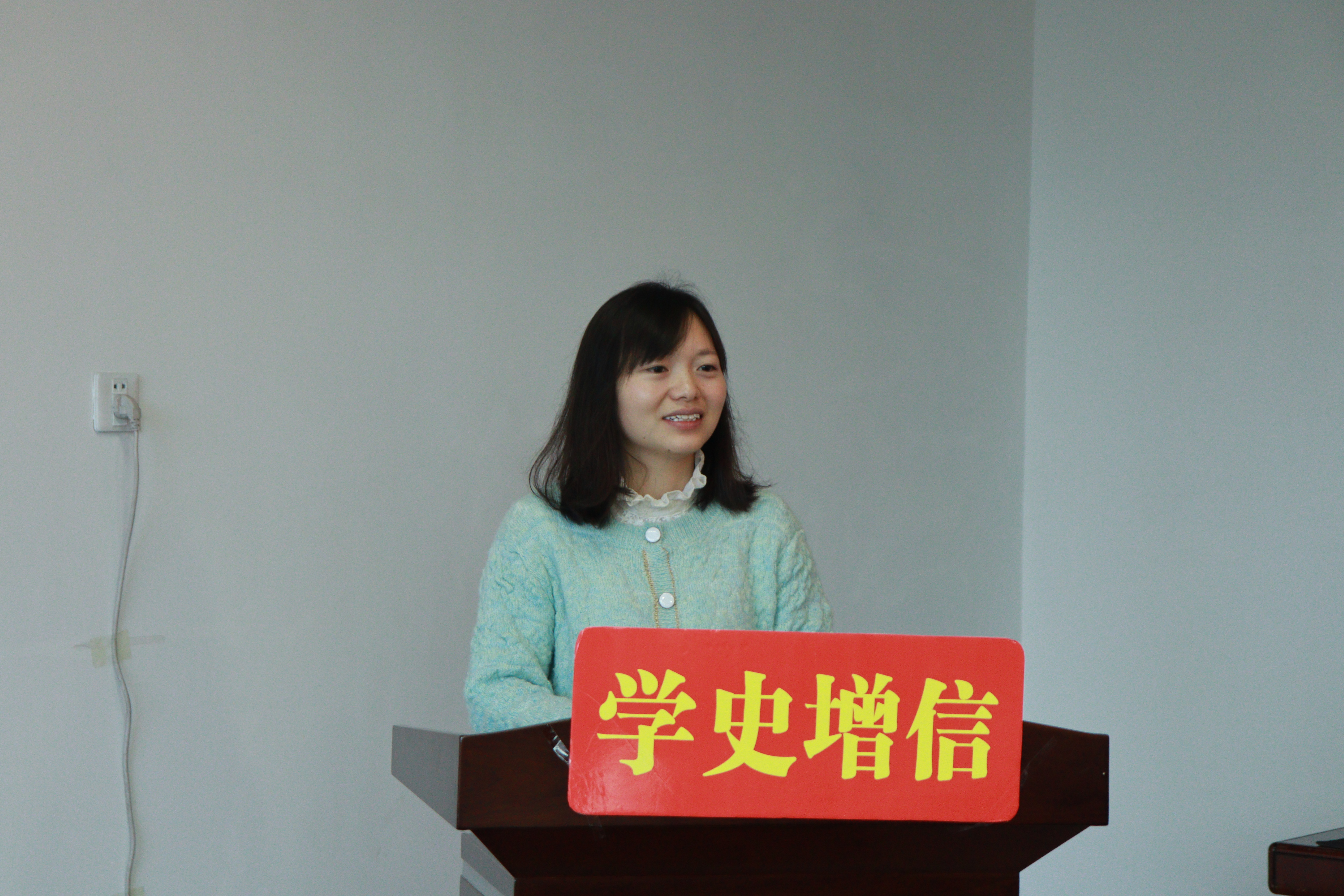 许若霏通过一系列典型红色故事向在座党员诠释了“信仰的力量”,并运用具体事例引起在座党员的感慨与反思,引导学生党员如何去践行“红色信仰”。同时,她鼓励党员做到“持坚定理想信念,培养高尚道德情操,扎实丰富科学知识,秉仁爱之心待他人”。并提出殷切希望,勉励大家在今后的学习、工作中,做到初心不改,时刻记得责任在肩,一步一步踏实前行。