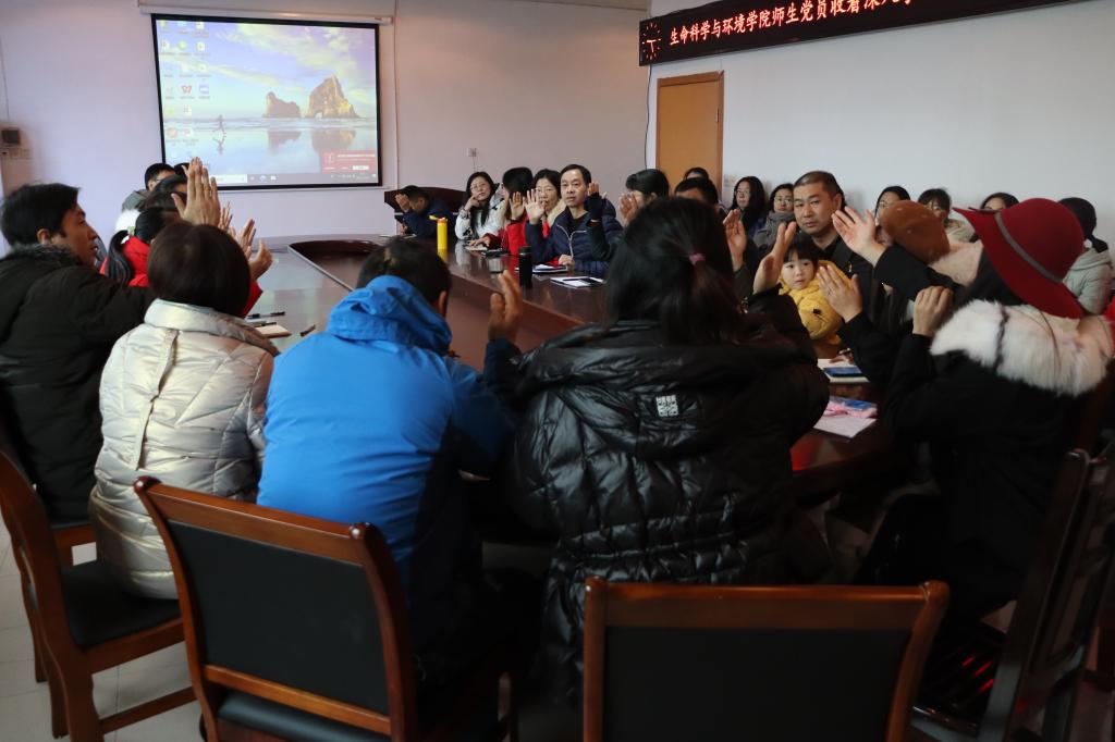 生命科学与环境学院党总支书记彭晖,院长曹丽敏及全体师生党员参与本次活动,这是一次高举旗帜、团结鼓劲、风清气正、奋发向上的大会,是一次胸怀"国之大者"议大事、聚焦发展全局献良策的大会。全院党员认真观看,会议室内内气氛热烈,全程涌动着学习的热情。