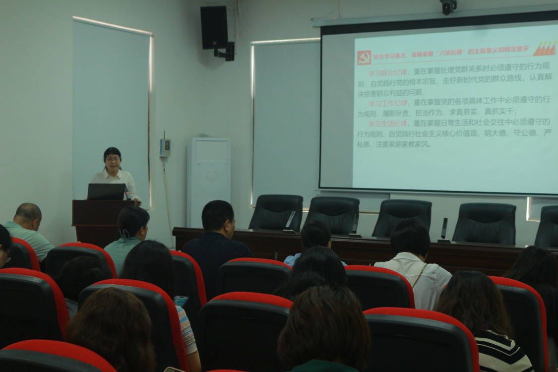 4月24日下午,beat365在线唯一官网党总支在西校区计算机楼417学术报告厅开展了党纪学习教育活动。党总支书记曹丽敏带领全体师生党员认认真真、逐章逐句学习了《中国共产党纪律处分条例》。
