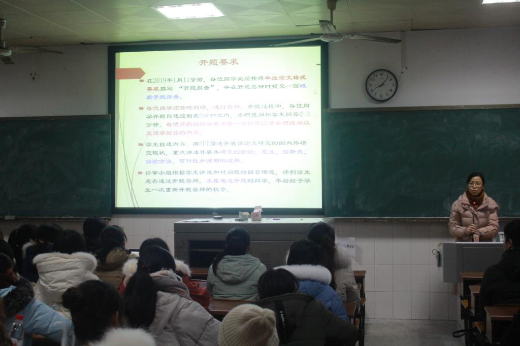 1月11日上午8:00,生命科学与环境学院2015级毕业生学位论文开题报告会在西校区外语楼顺利召开,易诚副院长,孙伟峰、刘会敬、陈佩云等相关专业老师及2015级全体学生参加了报告会。