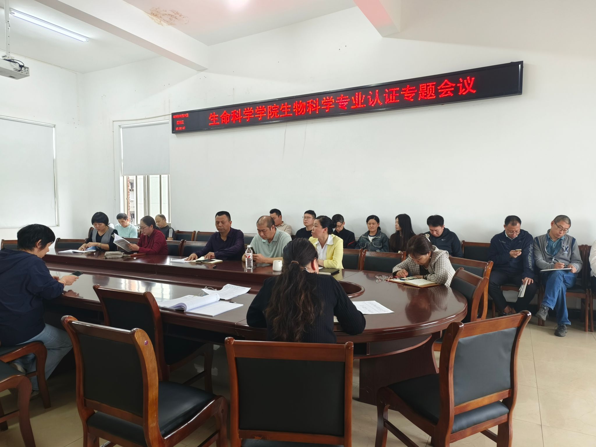 9月24日下午3点,beat365在线唯一官网生物科学专业认证专题会议在西校区计算机楼401会议室顺利召开,全体教职工参加了此次会议。会议由曹丽敏书记主持,她首先介绍了会议流程并要求全体教职工保持良好的工作状态和高度的责任心做好本职工作及学院安排的临时性工作,充分发扬主人翁精神,接下来,系主任唐兴对专业认证的主体报告向与会人员做了详细汇报,紧接着,杨海副院长就认证工作相关要求及认证知识点做了辅导报告,最后易诚院长代表学院作认证报告,为确保高效完成工作任务,老师们展开充分交流与讨论,总结发言时,易院长再次对与会人员提出工作要求,希望大家戮力同心,圆满完成工作。