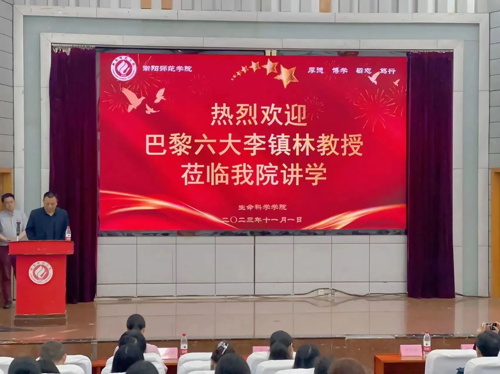 随后,李教授也简单介绍了他正在研究的心血管疾病发生的分子机理与防治方面的专业知识,数据精确,讲解生动,在座师生纷纷表示受益良多。