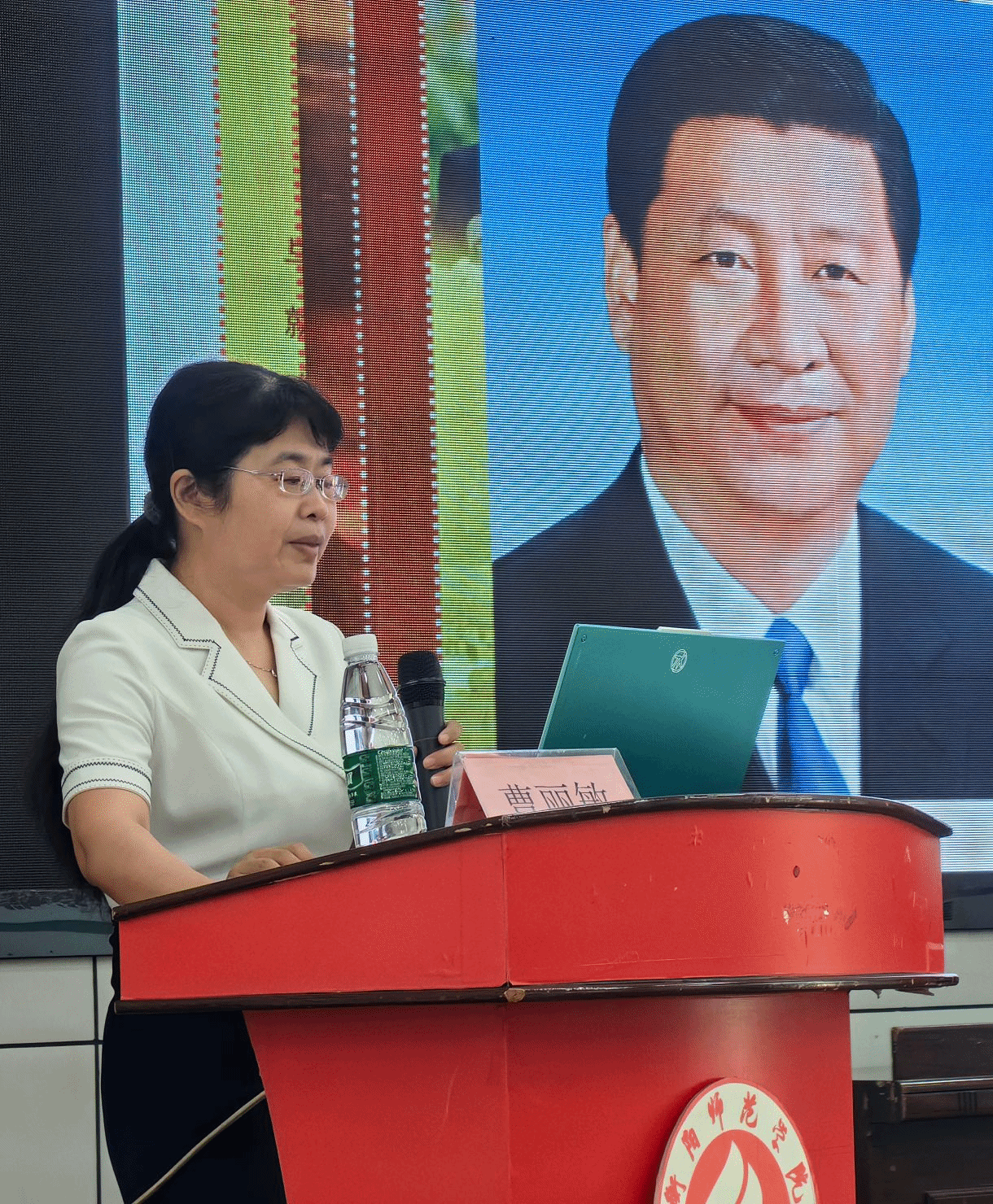 曹丽敏老师讲授《牢记党的性质和宗旨,为党和人民的事业奋斗终身》专题党课,从中国共产党的性质,即“两个先锋队”“一个领导核心”和“三个代表”出发,从全心全意为人民服务的宗旨为落脚点,讲解其由来与含义,对入党积极分子进行指导,鼓舞大家争做榜样模范,并寄予厚望。