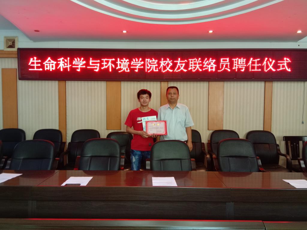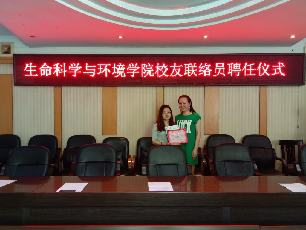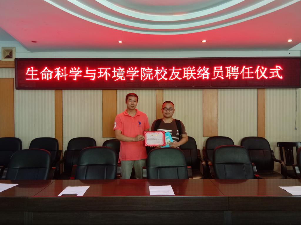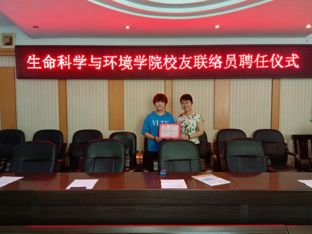 6.17日上午,生命科学与环境学院校友联络员聘任仪式在西校区行政办公楼308会议室成功举办,党总支书记刘艳波,院长曹丽敏,副院长易诚、杨海及相关老师参加了聘任仪式,会议由副院长杨海主持。