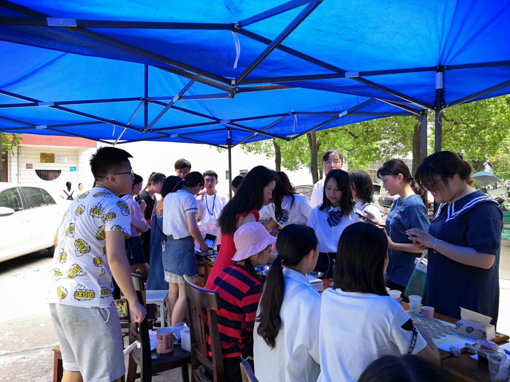 活动开始,各参赛人员精心准备了自己手工制作的食品于老校区千禧楼前进行摆台售卖。闻声而来的同学们陆陆续续地聚集在各展示台前,想一睹美食节盛况,看着令人眼花缭乱的各色美食,大家竞相参与食品俱乐部组织的食品小知识答题赢礼包活动,精美可口的美食吸引着一群群“学习积极小分子”,这项活动对于普及食品安全知识起到了较好的效果。