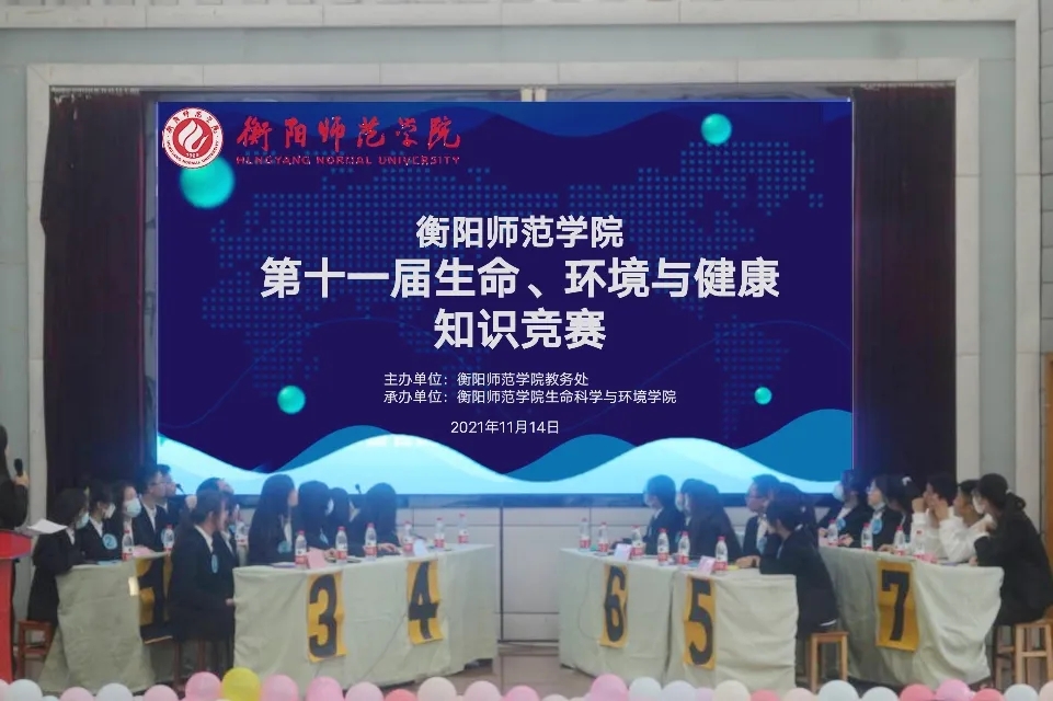 为活跃校园文化氛围,培养同学们的竞争意识和创新精神,进一步培养同学们珍爱生命、热爱生活的人生态度。2021年11月14日,由beat365在线唯一官网教务处主办、生命科学与环境学院承办的“生命、环境与健康知识竞赛”在西校区模拟法庭正式举行。生命科学与环境学院书记彭晖同志,院长曹丽敏教授,副书记蒋湘祁同志,副院长易诚教授,副院长杨海老师,辅导员许若霏老师,系主任江伟民老师莅临比赛现场,南岳学院院长王芳宇教授莅临下午场比赛现场,专业老师担任本次大赛评委。