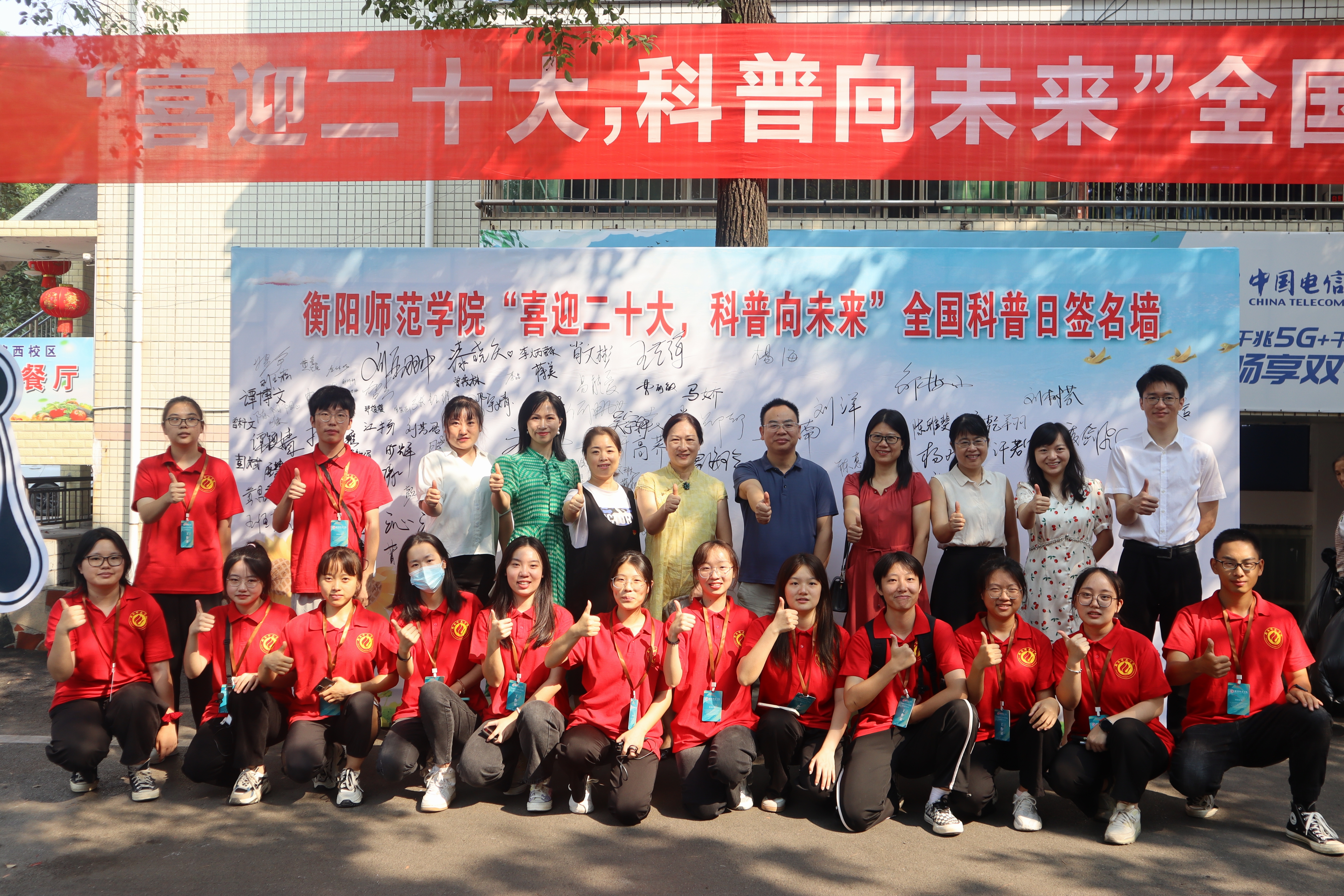在互动体验区,师生纷纷与富有超能量的“冰墩墩”打卡留影,并在“喜迎二十大,科普向未来”签名墙驻足签名,表达衡师师生热爱科学、崇尚创新的承诺和决心。