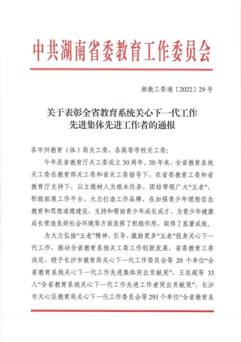 近日,省委教育工委印发了《关于表彰全省教育系统关心下一代工作先进集体先进工作者的通报》,beat365官网荣获“全省教育系统关心下一代工作先进集体”荣誉称号。