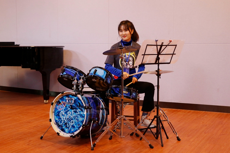 第二天,比赛考验选手们的其他才艺,beat365官网学生“各显神通”。尹亮现场制作了手工玫瑰,并附寓意:赠人玫瑰,手留余香;杨慧菲,张艳翎,向建博都选择了吉他弹奏,其中杨慧菲的表演更胜一筹;武小琪则选择了在女生中不太大众化的才艺:《改变自己》架子鼓演奏,伴随着鼓欢快有力的敲打,现场的气氛也逐渐升温。