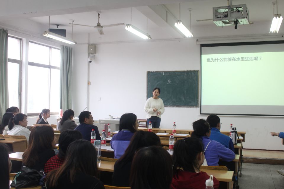 经半个月的初赛考验,16、17级共10位选手成功晋级进入决赛。经初赛的锤炼、赛前的精心准备,决赛中,选手讲课时逻辑更清晰、语言表达更流畅,课堂设计更完整。根据中学生学习到的生物学旧知识与生活经验引入要讲的内容,16级选手张艳翎提问“你们吃过鱼吗?鱼的形态是怎样的?”,从学生的生活经验入手,引入要讲的内容;17级选手谭玲芝根据中国“重男轻女”封建思想提出问题“生男生女可以由我们决定吗?”,对“人的性别遗传”一课的内容做了课前引入。