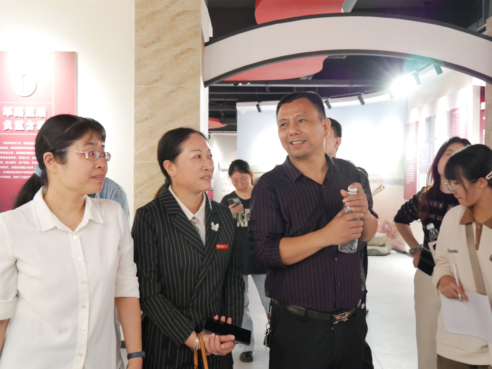 走进校史馆,仿若踏入了时空隧道。“鲲鹏激浪,肇始湘南”,在这里,党员们的目光聚焦于历史沿革图,那是一幅跨越时空的画卷,清晰地勾勒出历史蜿蜒前行的轨迹,校名如繁星般更迭变化的历程,深刻体现出教育者们初心不改、弦歌不辍的伟大精神,它穿过百年时光,润泽着每一位党员的心灵。
