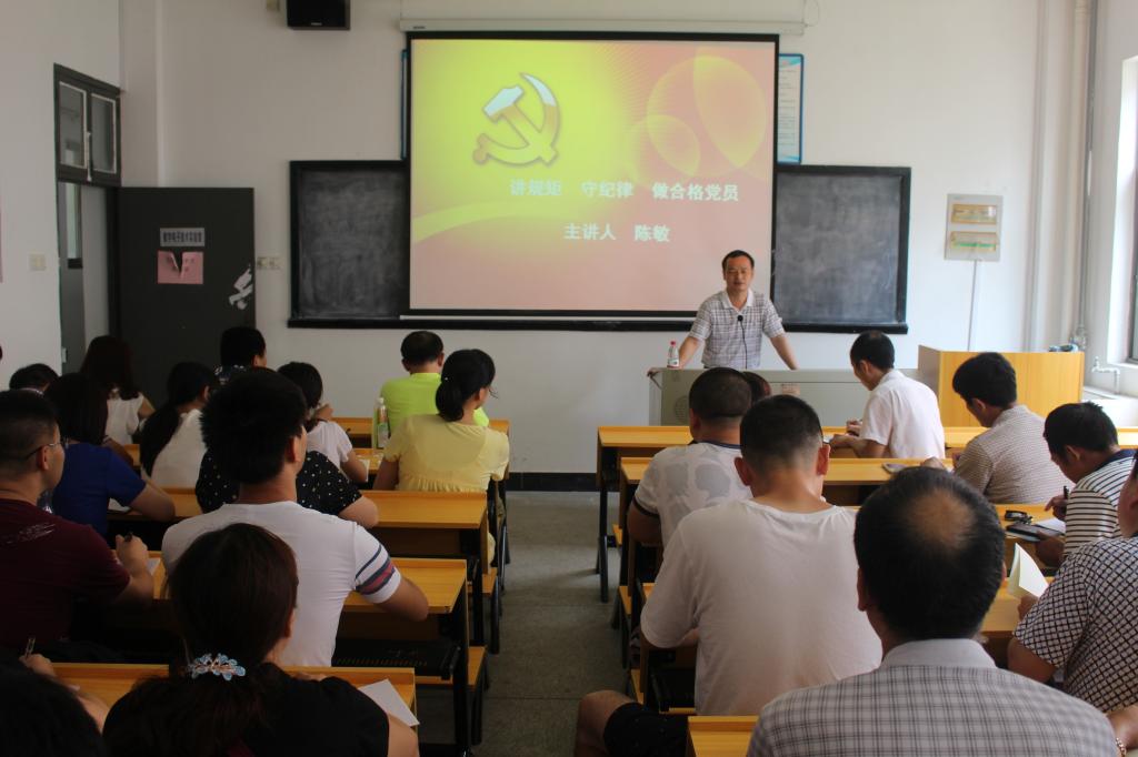 6月29日下午3:00,beat365官网副校长陈敏在西综实楼408室做了“两学一做”专题—“讲规矩,守纪律,做合格党员”辅导报告会。生命科学与环境学院、保卫处、后勤处等部门共80余名党员参加了报告会。