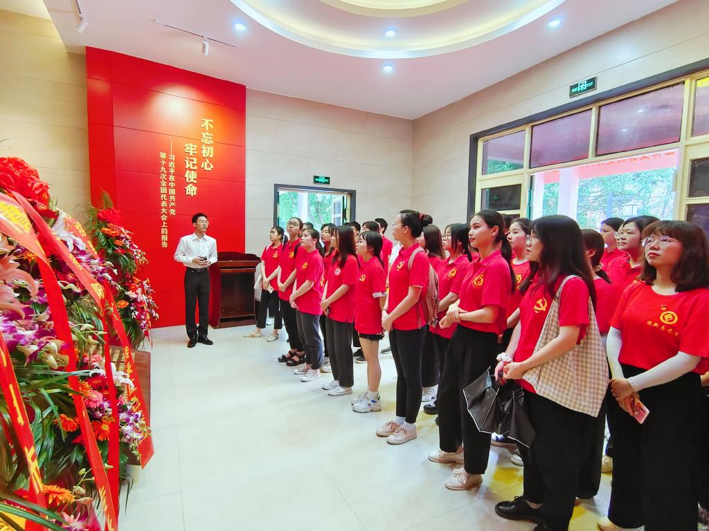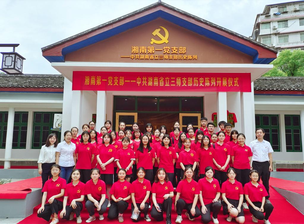 为推进党史学习教育,持续深化爱国主义教育,发挥党员带头作用,力争做到“学史力行”,beat365官网学生党支部于2021年6月30日前往湘南第一党支部--中共湖南省立三师支部历史陈列馆开展纪念“七一”建党100周年主题党日活动。beat365官网党总支书记彭晖、副书记蒋湘祁、学生党支部书记许若霏带领57名学生党员参与了此次活动。党总支副书记蒋湘祁担任主持人。