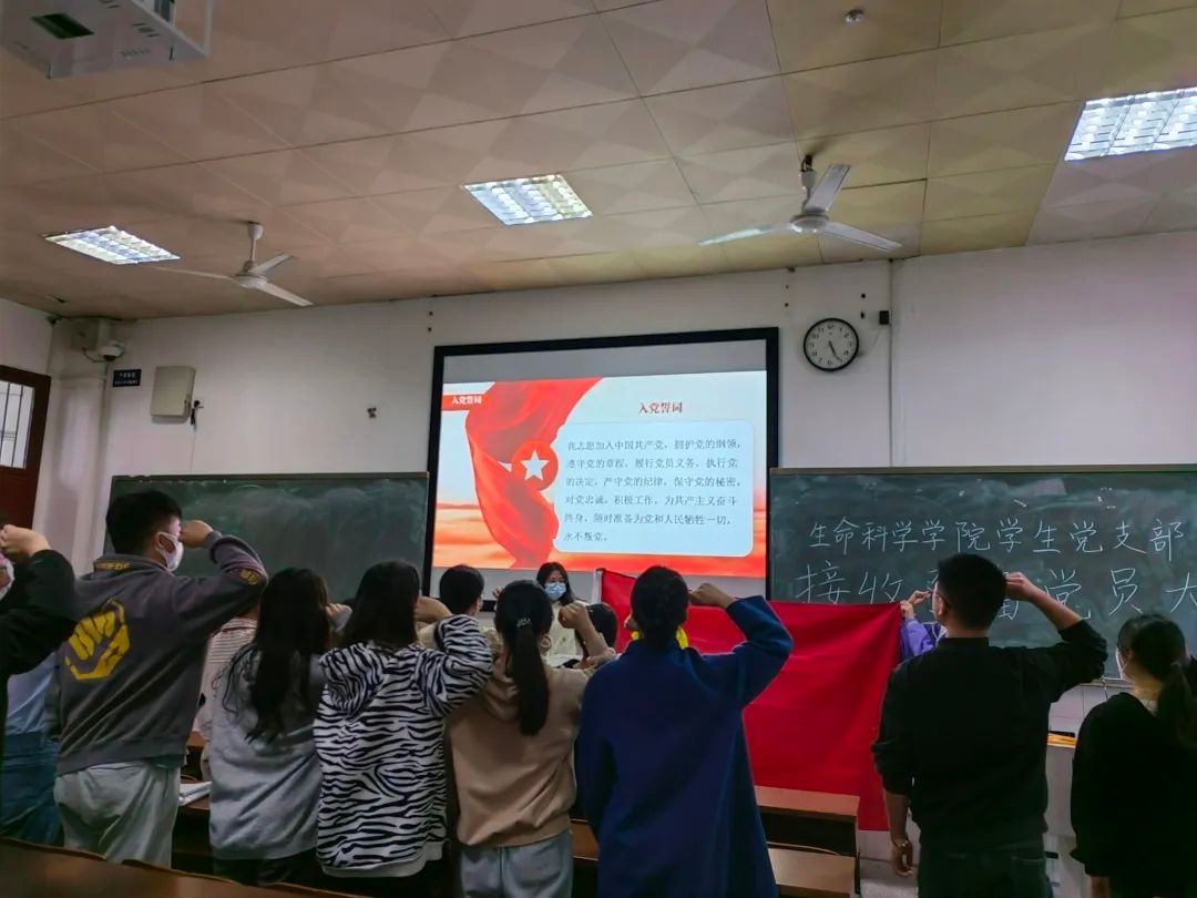 接着,正式党员以无记名的方式进行投票表决,罗佳欣宣布票决结果。大会一致同意接收文玉蓥等16名同志为中共预备党员。预备党员在党旗下进行了庄严宣誓。会议末,罗佳欣转述了学生党支部书记邓明智提出的要求,邓明智要求全体预备党员要以身作则、模范带头、团结他人、善于斗争,希望预备党员能肩负起党员的重任。