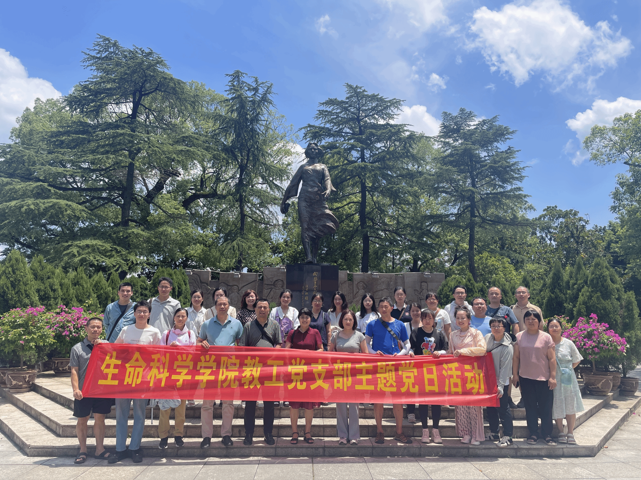 活动伊始,党员同志来到了向警予铜像纪念碑广场参观。纪念碑广场中心矗立着向警予铜像,全体教职工党员在此共同缅怀革命先烈,重温红色记忆,传承爱国情怀。