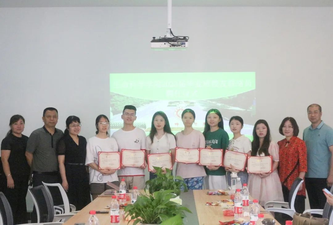 仪式上,杨海院长分别为受聘的校友联络员颁发聘书与他们一一握手并合影留恋。陈书记对受聘的2023届毕业生校友联络员表示祝贺,并希望各位校友可以当好母校与校友之间的联络桥梁,恪守职责,助推我系校友建设工作再上台阶。同时陈书记希望联络员们对学校、学院、老师、教学、教学管理以及学生管理提出中肯的意见和建议,以便于今后工作的开展和提高工作效率。