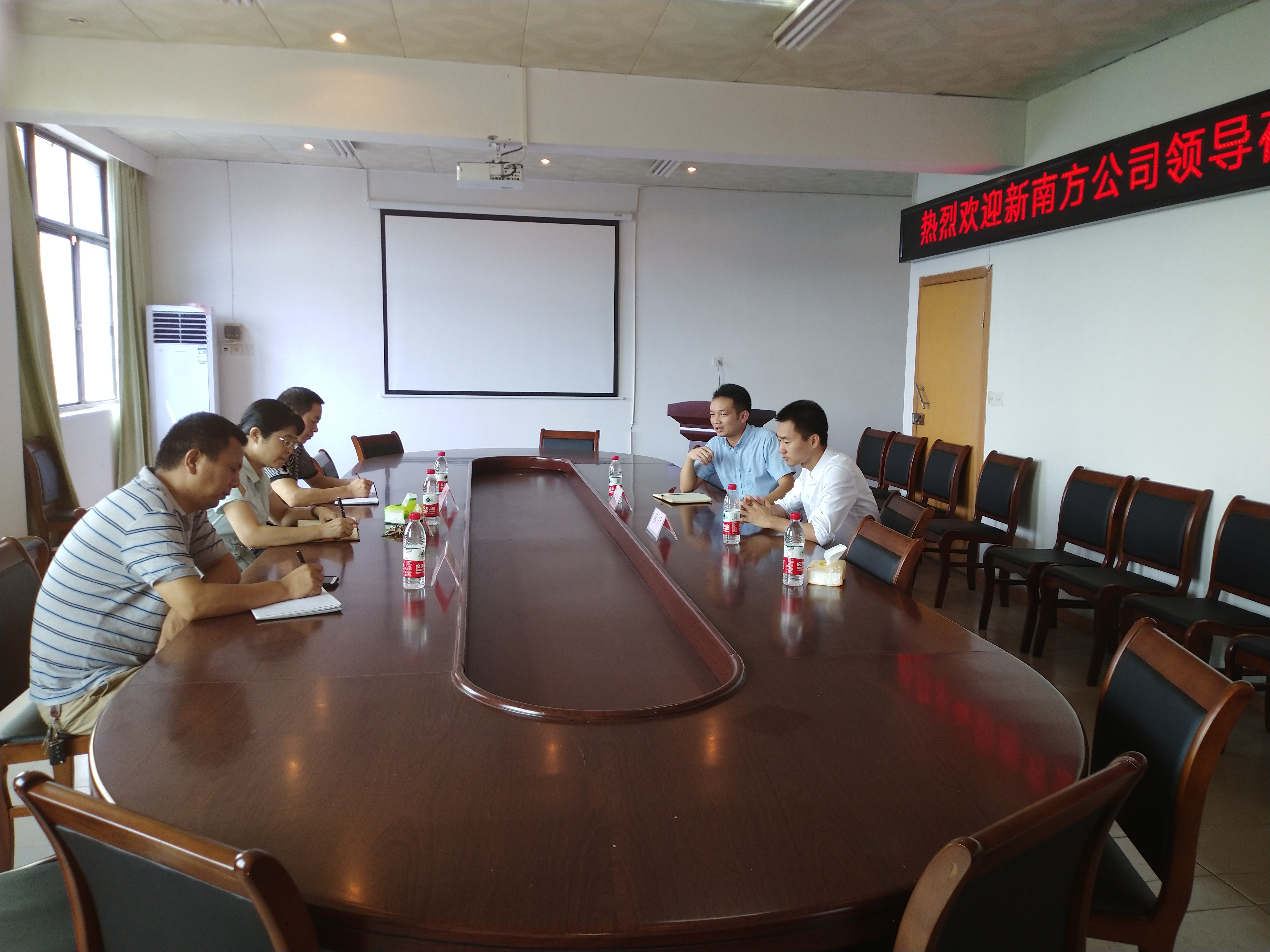 新南方公司领导刘明、蔡行以及beat365在线唯一官网生命科学与环境学院院长曹丽敏、党总支书记彭晖、副院长易诚、唐青海博士参加了洽谈会。