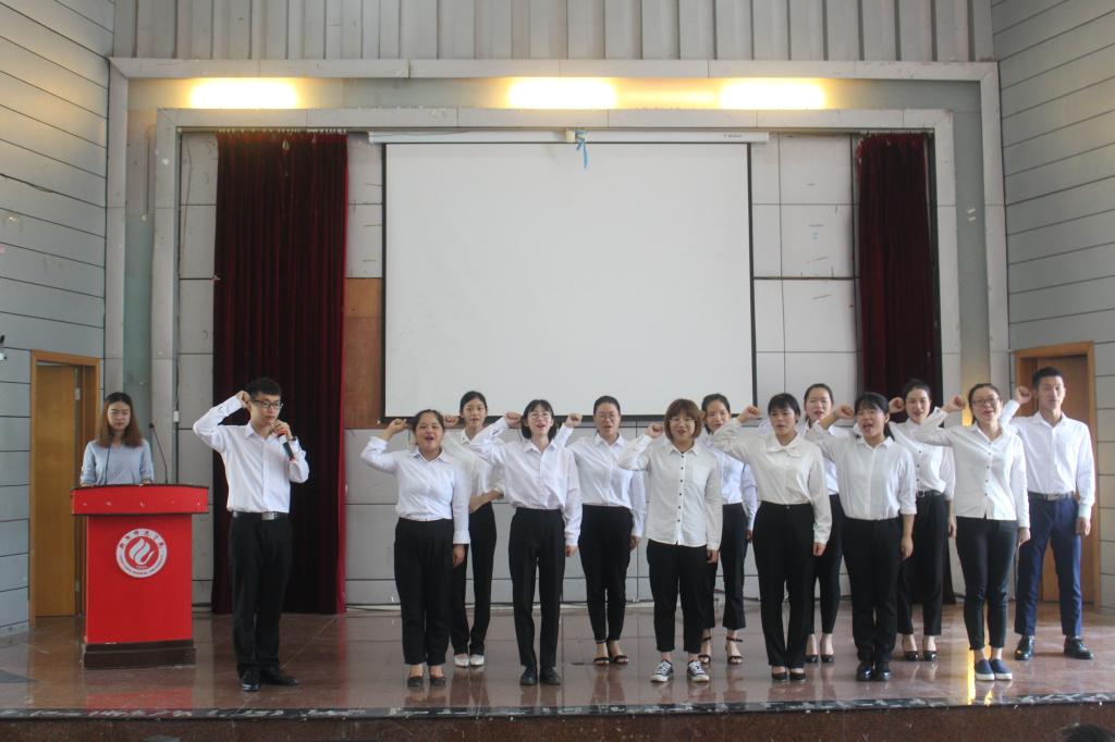 随后,团委书记刘树芬老师宣读第十届团委学生分会优秀学生干部名单及第十一届各部门人员名单。隆重的院旗交接仪式后,新任主席秦永强带领学生会成员庄严宣誓。