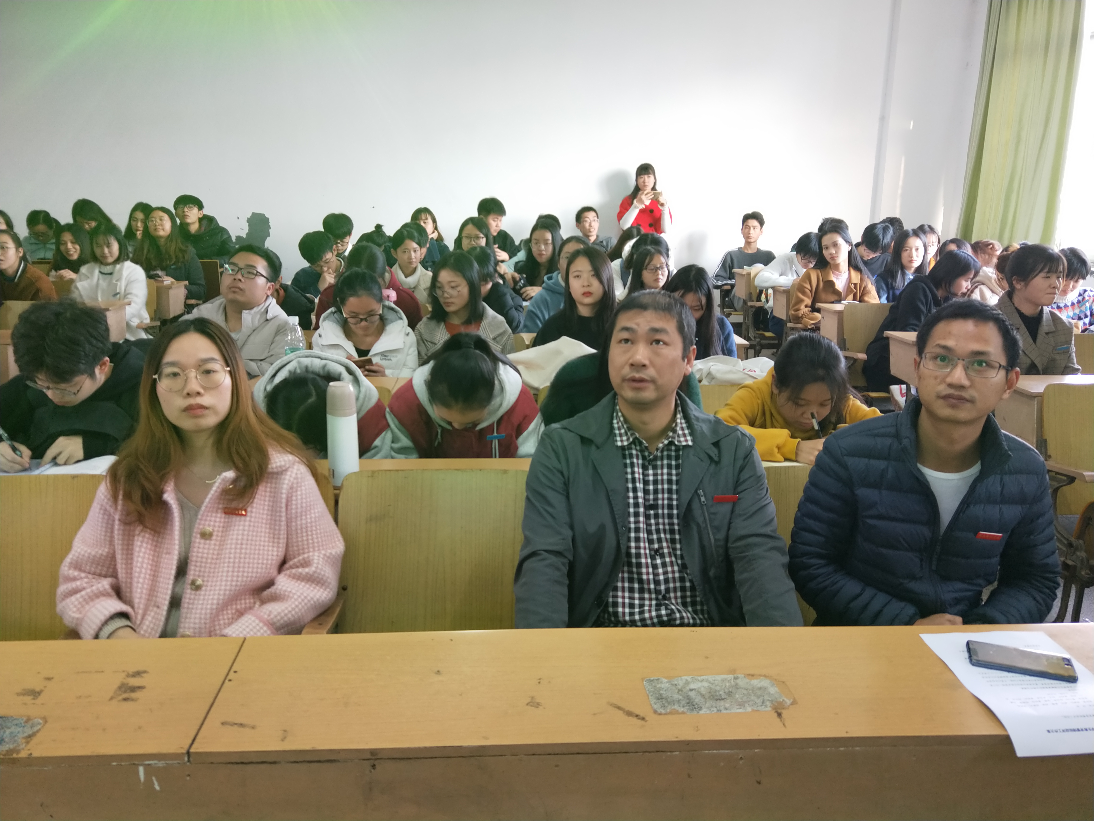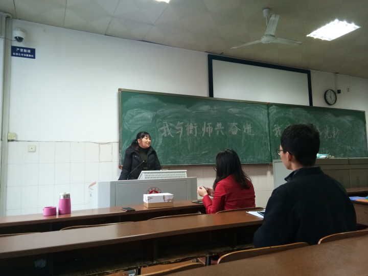 1801班以放映沙画视频的形式唯美生动地进行历史回眸:从丝绸之路到新中国的建立,40年改革开放福泽深厚;1703班开展的有奖知识问答竞赛,同学们踊跃举手回答,积极参与互动,班会氛围活跃,趣味盎然;在17级环境班的班会中,班级团支书为大家宣读《生环学院本科教学工作审核评估知识宣传手册》,全班共同学习、牢记在评估期间应注意的事项。此外,各班班主任也在班会上介绍了学校及学院的办学理念、办学目标、办学定位、办学特色和本科人才培养工作的特色和亮点,培养同学们对学校与学院的高度认同感、自豪感,进一步增强与衡师共奋进,为评估添光彩的决心和信心。同学们在班会结束后,由班委成员带头,纷纷在QQ、朋友圈等社交平台上分享了自己的观后感,如“我会严格要求自己,坚持不睡懒觉,认真学习,展现出优秀衡师学子的良好风貌”等。