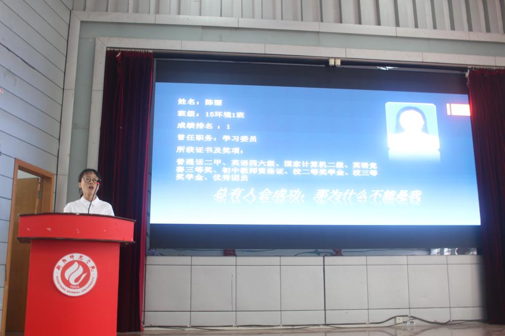 本次大会本着公平公正的原则,各班贫困生代表按国家励志奖学金四条评选指标即“思想品德、学习情况、家庭经济情况、校级校规的遵守情况”参与投票选举,决定最终奖学金的得主。选手们身着正装,依次上台答辩,叙述自身的优秀事迹,展示丰富实践成果,简介自身家庭情况,从多方面展现自我的精神风貌,或慷慨激昂,或娓娓道来……现场不时响起阵阵掌声。