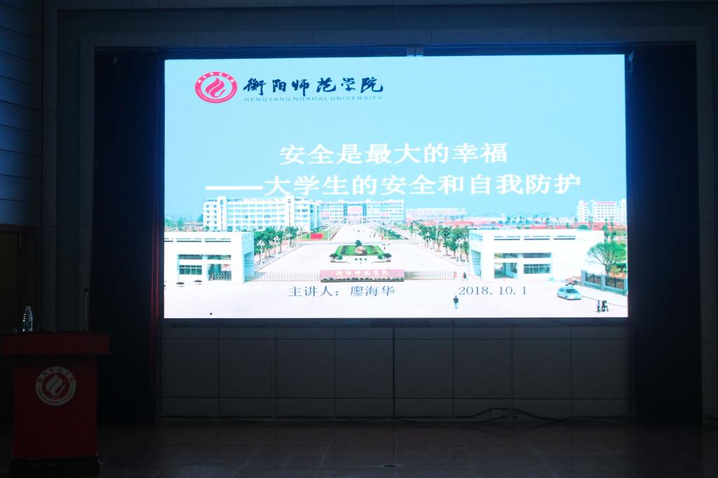 10月1日晚19点,生命科学与环境学院2018级全体新生在西校区模拟法庭聆听《大学生安全与自我保护》主题教育讲座。beat365官网党总支副书记廖海华,团委书记刘树芬,辅导员老师许若霏、黎琦莅临讲座。