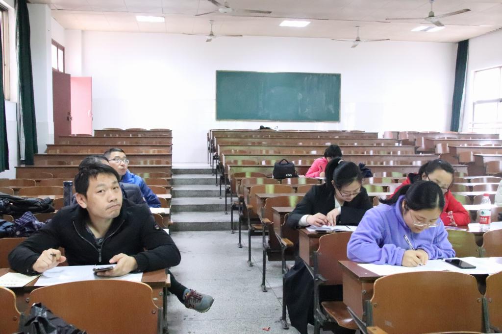 比赛中,实习教师们展示出自己在经历实习过后逐渐扎实的教学基本功与各具特色的教学风格,评委们认真聆听,做好赛况记录。
